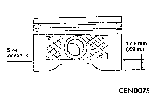 1. Piston and cylinder wall must be clean and dry. Piston diameter should be measured 90 degrees to piston pin at size location shown in the figure. Cylinder bores should be measured halfway down the cylinder bore and transverse to the engine crankshaft center line. Correct piston to bore clearance must be established in order to assure quiet and economical operation.