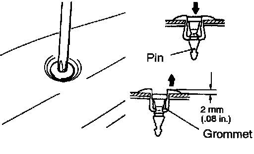 CAUTION: Do not push the pin inward more than necessary because it may damage the grommet, or the pin may fall in, if pushed too far.