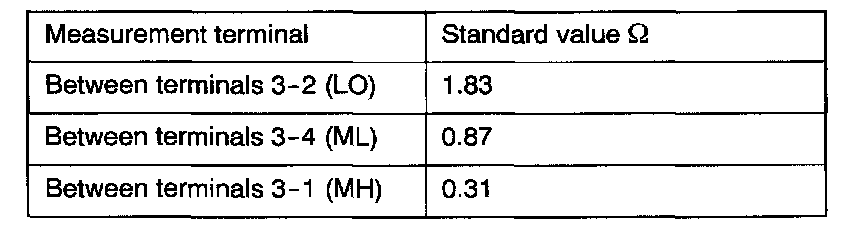 Use an ohmmeter to measure the resistance between the terminals as indicated below. Check that the measured value is at the standard value.