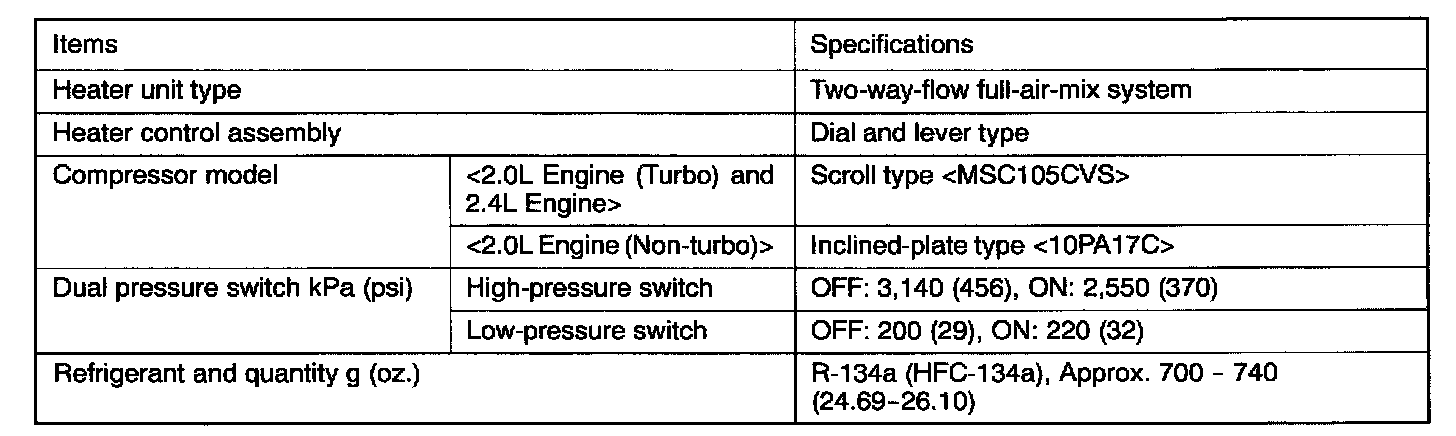 GENERAL INFORMATIONThe heater system uses a two-way-flow full-air-mix system that features high performance and low operating noise, and includes an independent face air blowing function and a cool air bypass function.