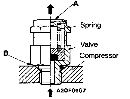 1. If a leak is detected at section A, replace the high-pressure relief valve. The valve can be used unless there is a leak from that section.