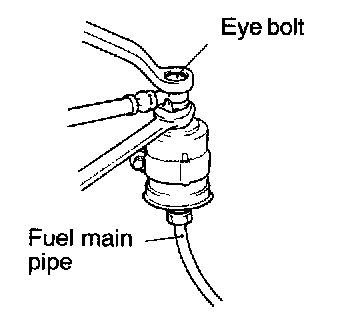 Hold the fuel filter with a spanner and loosen the flare nut. Then disconnect the fuel main pipe.