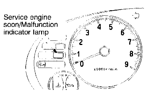2. Count the number of times the malfunction indicator lamp (service engine soon) on the instrument panel flashes on and off. The number of flashes represents the trouble code. There is a slight pause between the flashes representing the first and second digits of the code. Longer pauses (approx. 4 seconds) separate individual trouble codes.