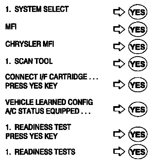 4. Observe the Readiness Test status by following the scan tool selection sequence shown in the illustration.