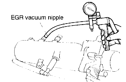 EGR PORT VACUUM CHECK1. Disconnect the vacuum hose from the throttle body EGR vacuum nipple. Connect a hand vacuum pump to the nipple.