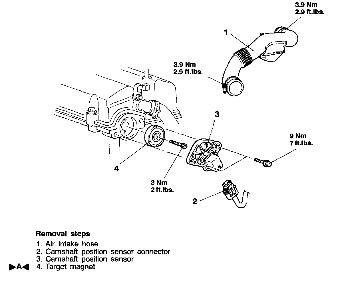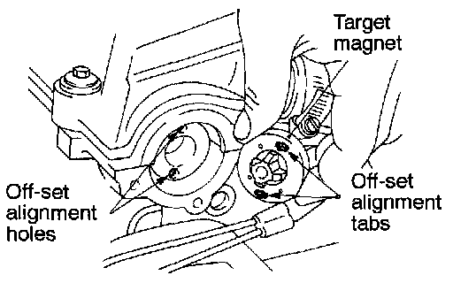 To install the target magnet, align the off-set tabs of the magnet with the off-set holes of the camshaft.