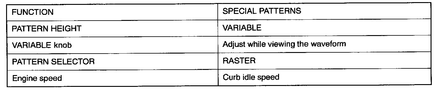 2. Identification of abnormal waveforms is easiest with a large output current (regulator not operating). These waveforms can be observed when the headlights are on.