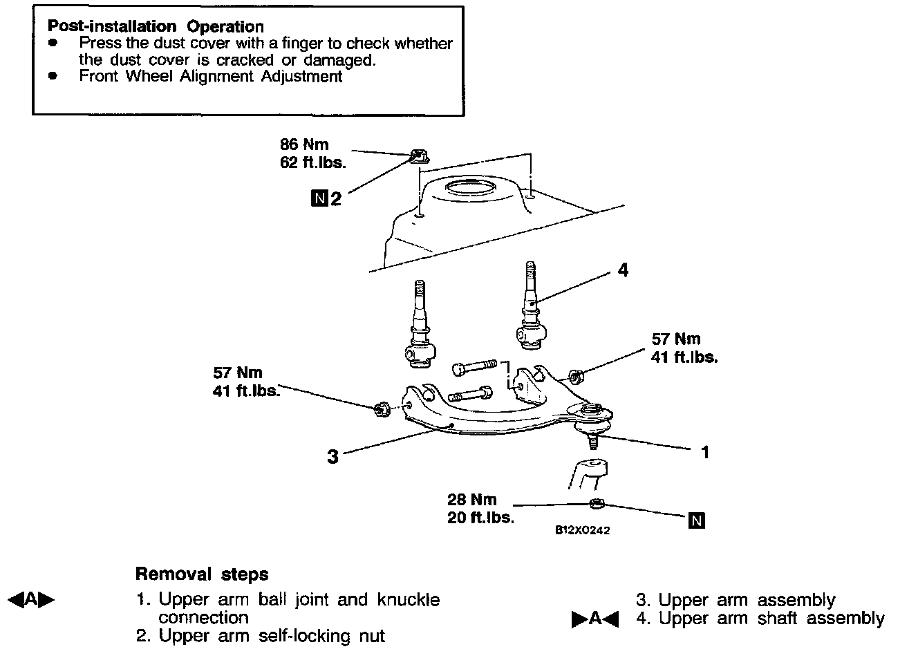 2. When dust cover is cracked or damaged, replace the upper arm assembly.