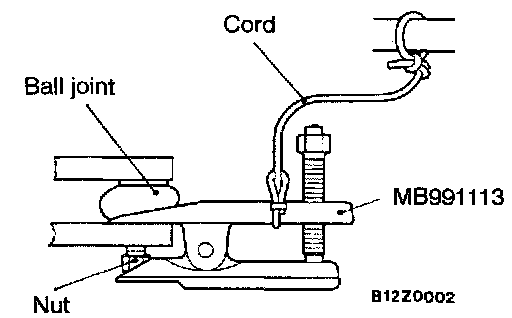 1. After shaking the ball joint stud several times, install the nut to the stud and use the special tool to measure the breakaway torque of the ball joint.