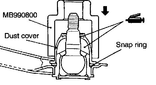 NOTE: If the dust cover is cracked, the ball joint could be damaged, so if the dust cover is damaged during maintenance work, replace it.