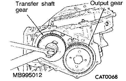 46. Remove transfer shaft with Installer/Remover MB995003.