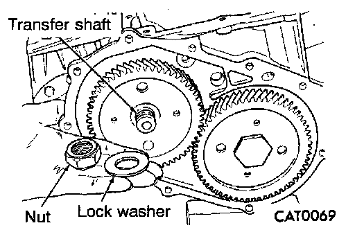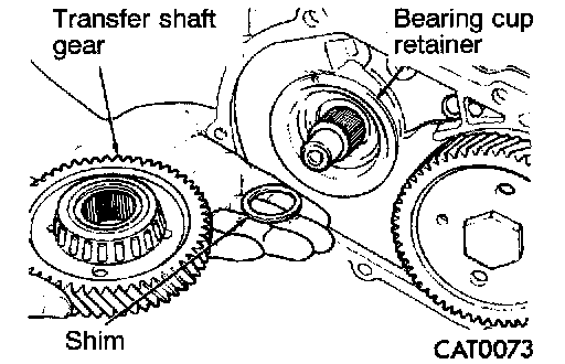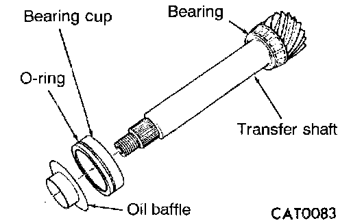 47. Remove oil baffle and bearing cup from transfer shaft.