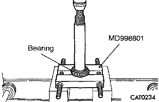 48. Remove transfer shaft bearing with Bearing Splitter MD998801.