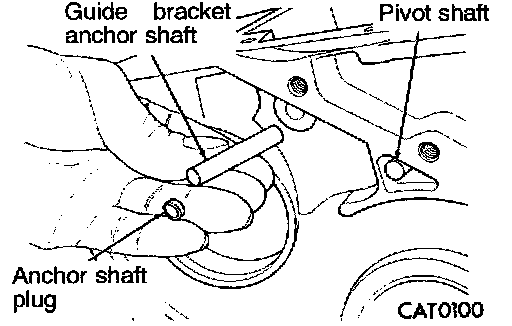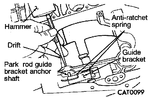 60. Drive out park rod guide bracket anchor shaft with a hammer and drift.