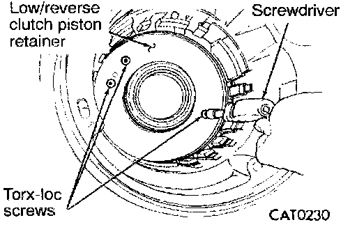 65. Remove Torx-loc screws attaching low/reverse clutch piston retainer.