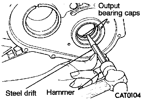 68. Drive out output bearing inner cup with a steel drift and hammer.