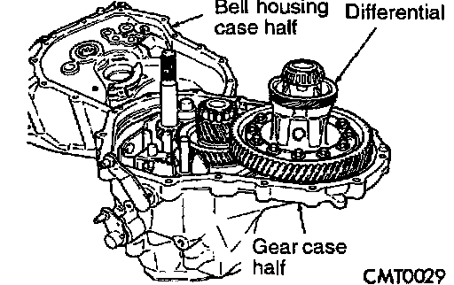 4. Remove bell housing case half, from gear case half.