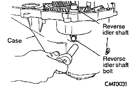 7. Remove reverse idler shaft bolt.