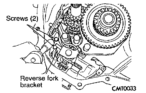 8. Remove two screws retaining reverse fork bracket.