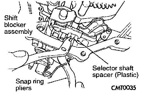 9. Using snap ring pliers, remove selector shaft spacer.