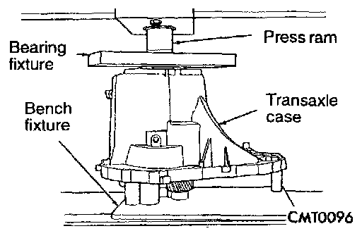 15. Install transaxle gear case and bench fixture onto shop press. Press output and input shaft assemblies out of case.