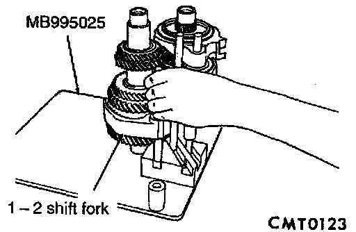 20. Remove the 1 - 2 shift fork from the output shaft.