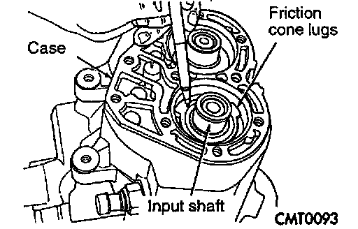 5. Line up reverse brake friction cone lug to the slots in the gear case. Verify reverse brake shim is in position.