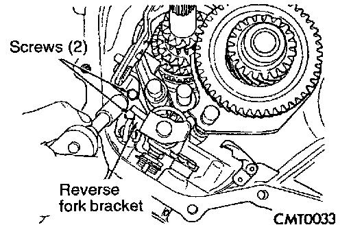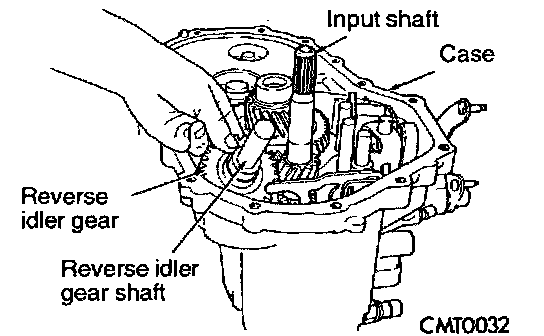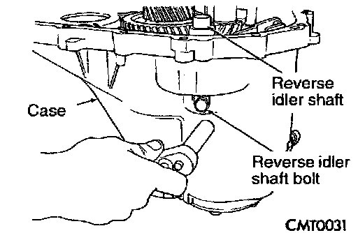 13. Install reverse idler gear and shaft. Install bolt into shaft. Tighten bolt on shaft to 26 Nm (19 ft. lbs.) torque.