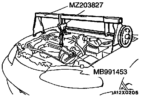 Set the special tool to the vehicle to support the engine assembly.