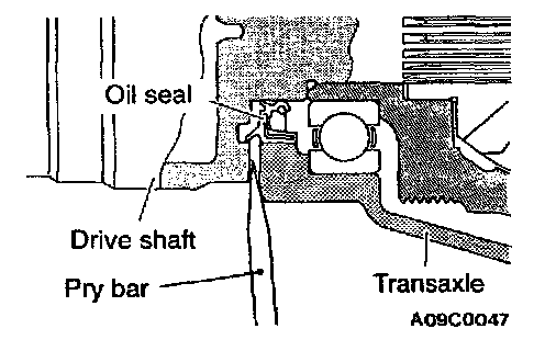 1. Insert a pry bar between the transaxle case and the drive shaft to remove the drive shaft.