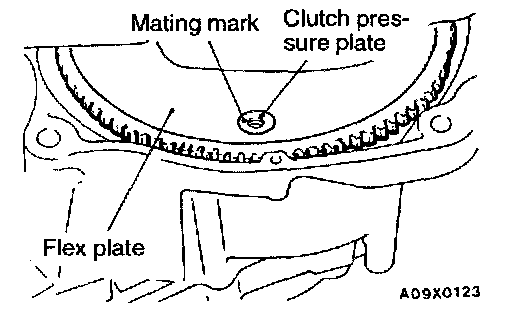 3. Chalk mating marks on the flex plate and clutch pressure plate for easier installation.