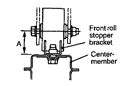If the dimension shown in the illustration is outside the standard value when the weight of the engine is on the body, replace the front roll stopper bracket assembly.