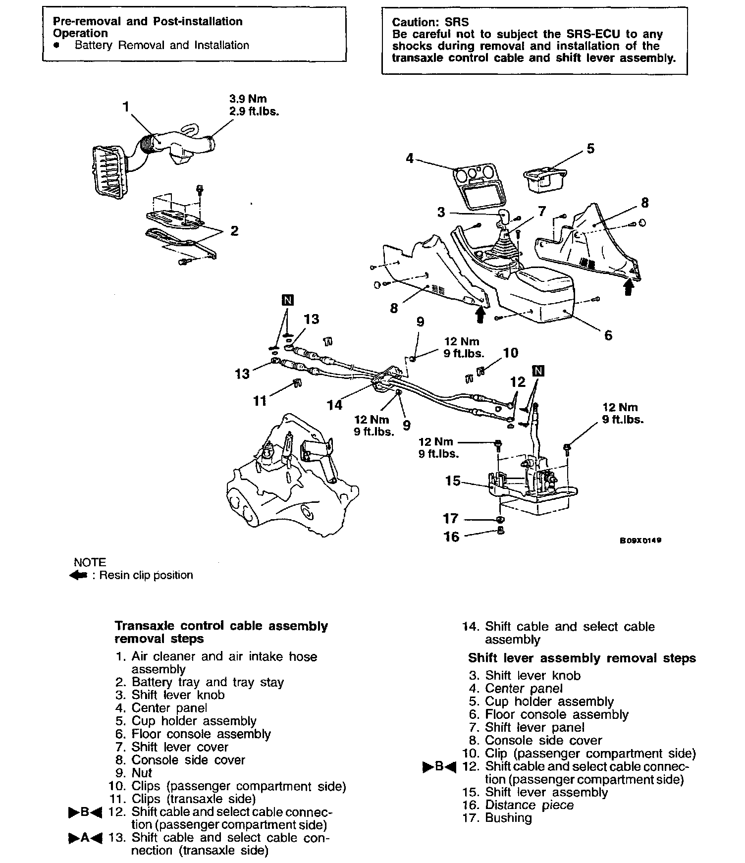 >B< SHIFT CABLE AND SELECT CABLE CONNECTION (PASSENGER COMPARTMENT SIDE)