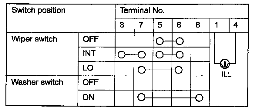 WIPER AND WASHER SWITCH CONTINUITY CHECK
