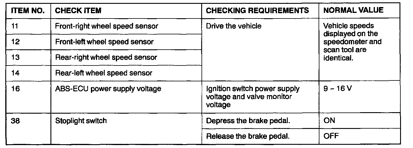 When the diagnostic trouble system stops the ABS-ECU, the scan tool display data will be unreliable.