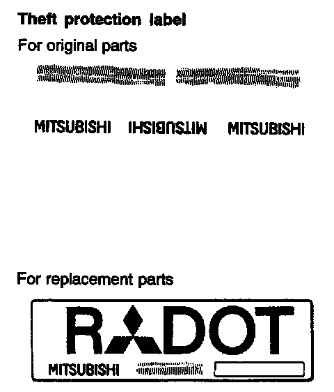 1. When repainting original parts, do so after first masking the theft-protection label, and, after painting, be sure to peel off the masking tape.