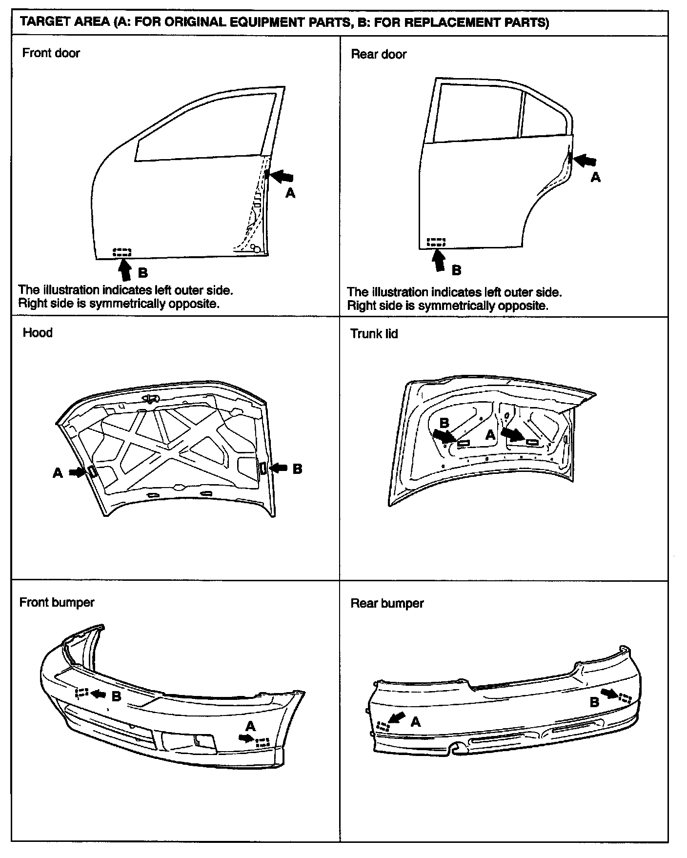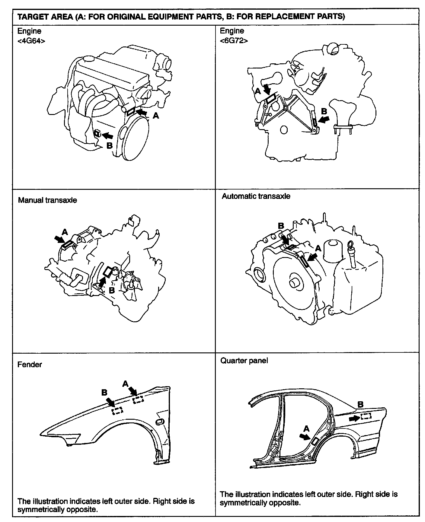 In addition, a theft-protection label is attached to replacement parts for the body outer panel main components, and the same data are stamped into replacement parts for the engine and the transaxle.
