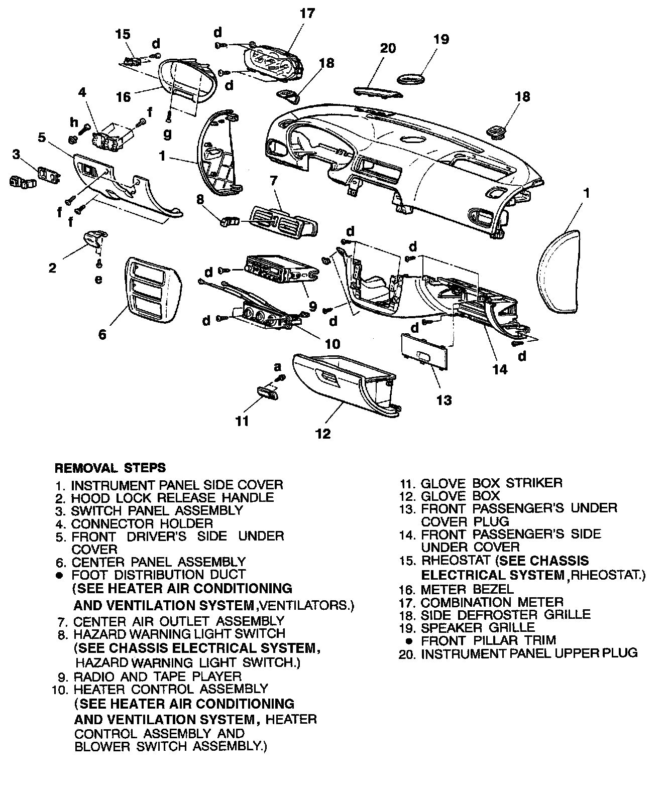 WARNING: For removal and installation of the passenger's side air bag module, always observe the service procedures described in RESTRAIN SYSTEM, Air Bag Module and Clock Spring.REMOVAL AND INSTALLATION