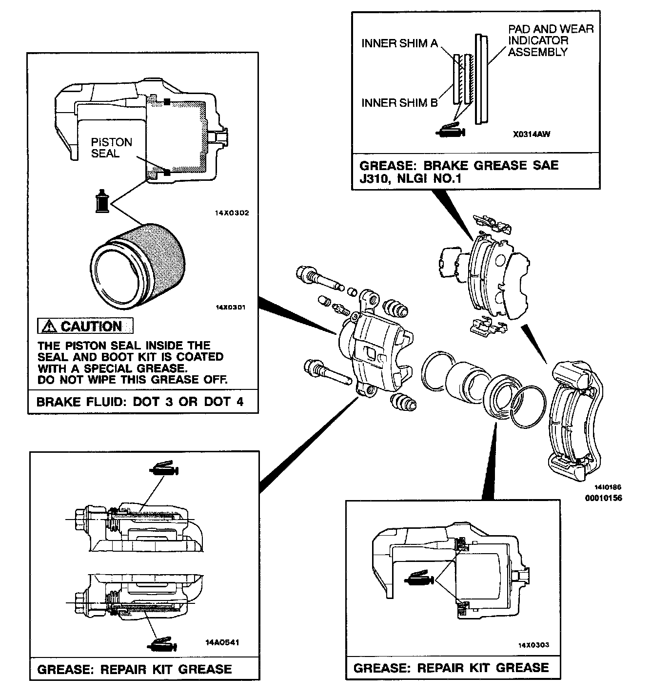 CAUTION: If there is significant difference in the thicknesses of the pads on the left and right sides, check the sliding condition of the piston, lock pin and guide pin.