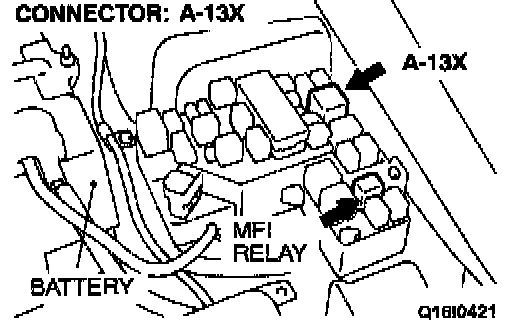 If any harness wire between MFI relay and fan control relay connector A-13X is damaged, repair or replace it.