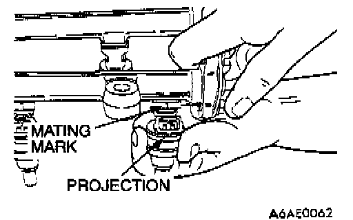 4. Rotate the injector until the projection of the injector connector is aligned with the fuel rail mating mark.