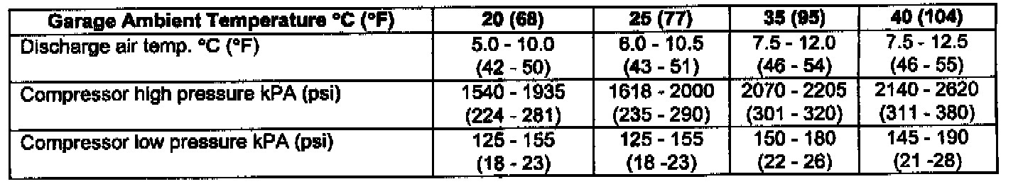 1. Conduct the performance test as instructed on page 55-20 of the 1999 Galant Service Manual, Volume 3. Please disregard the performance temperature chart on this service manual page, as it is incorrect. Please refer to the updated chart above or the information in the TSB-99-55-003 service manual revision.