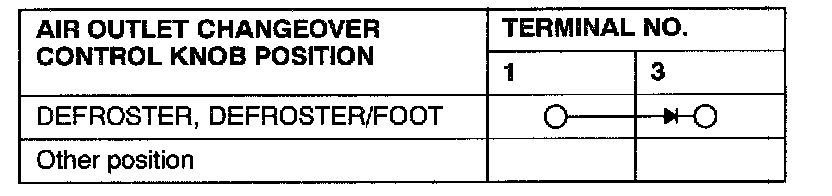 NOTE: Battery voltage should be supplied when the air outlet changeover knob is at the defroster or defroster/foot position.