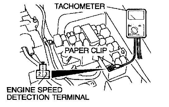 TACHOMETER CHECK1. Attach an external high quantity tachometer to the engine speed detection connector on the harness side (such as with a paper clip).
