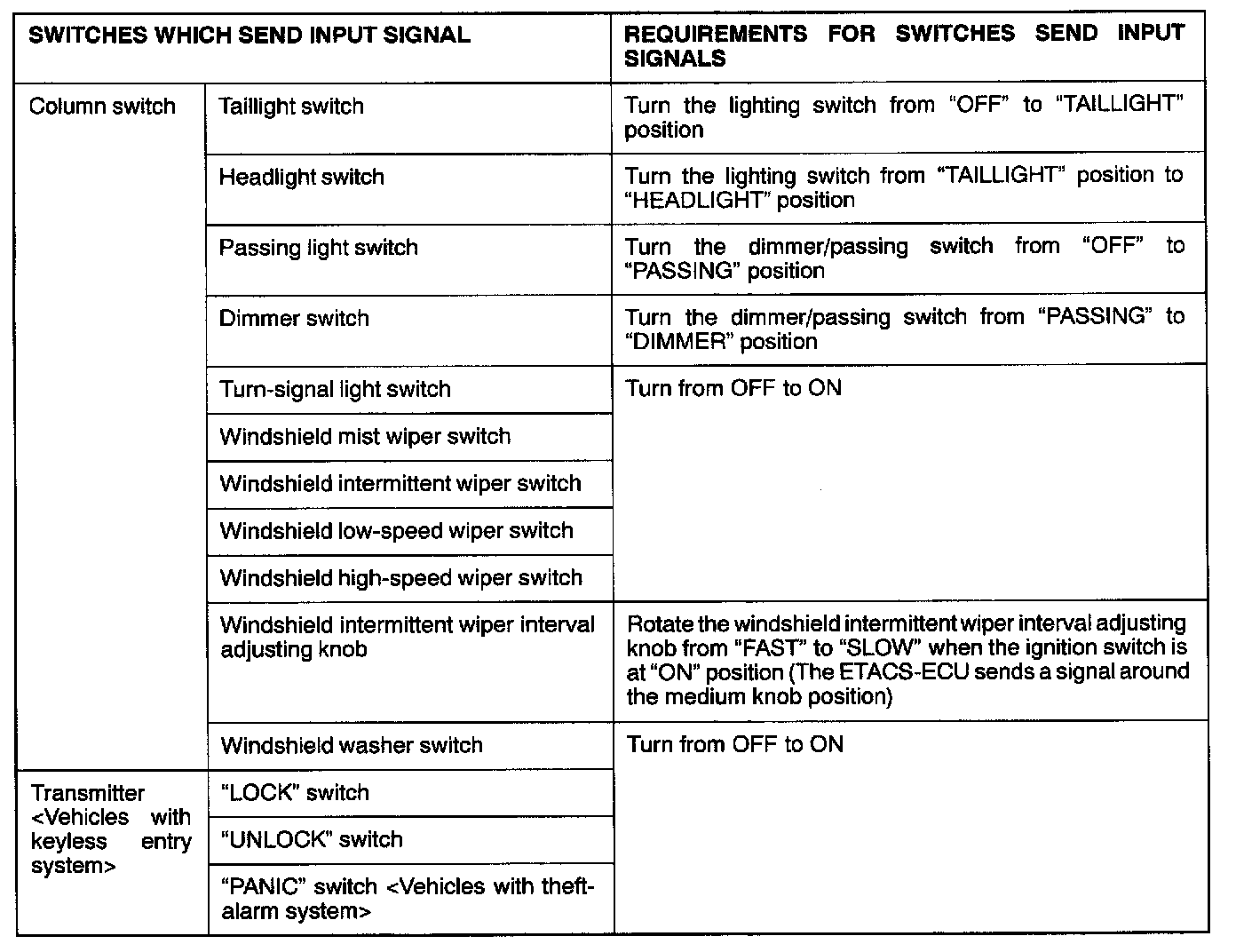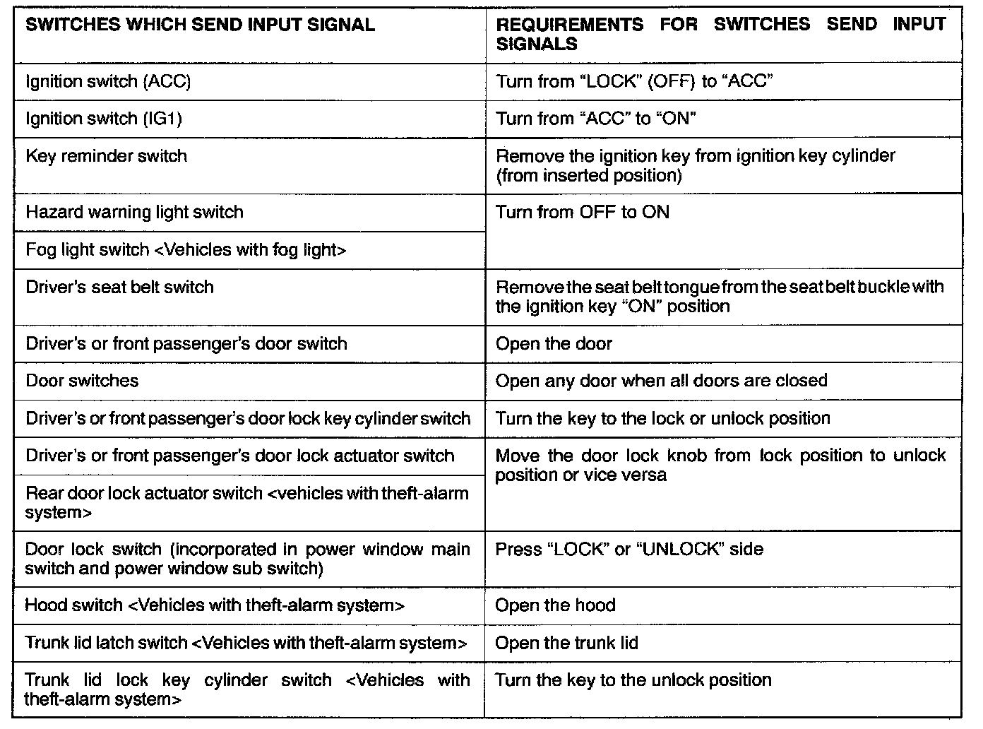 Requirements for which switches send input signals