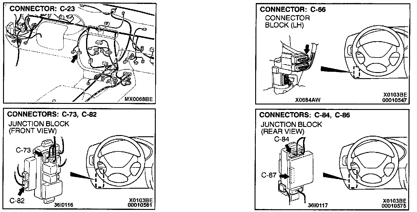 NOTE: After checking junction block connector C-73, check the wires. If junction block connector C-73 is damaged, repair or replace it. Refer to Harness Connector Inspection.