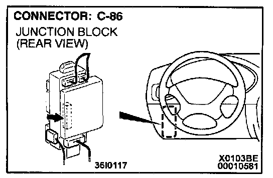1. Disconnect the ETACS-ECU connector C-86 and measure at the junction block side.