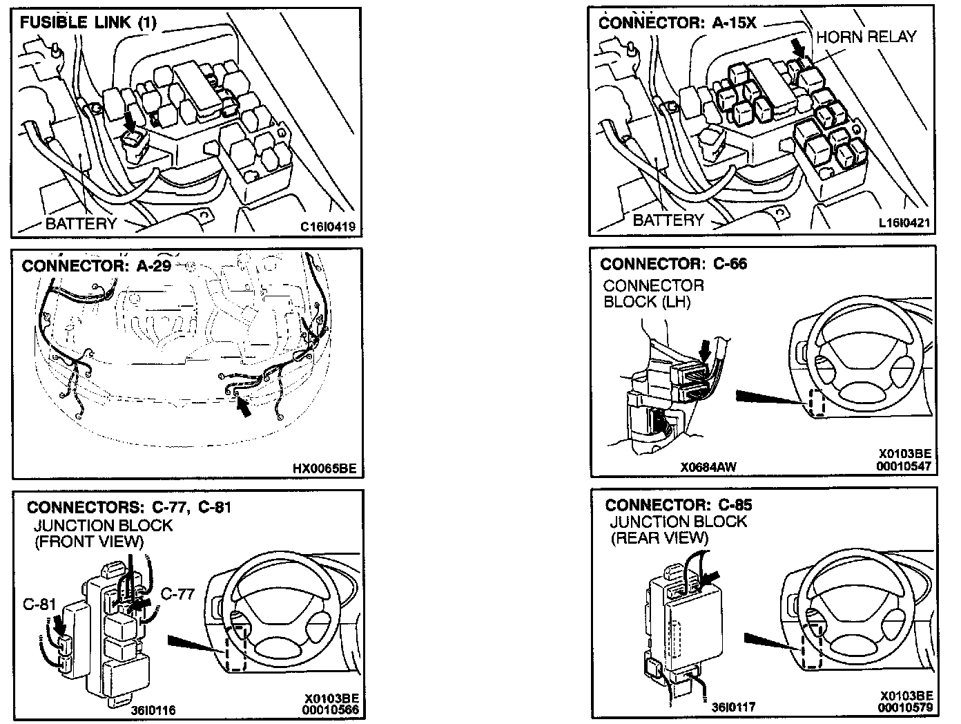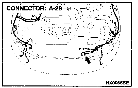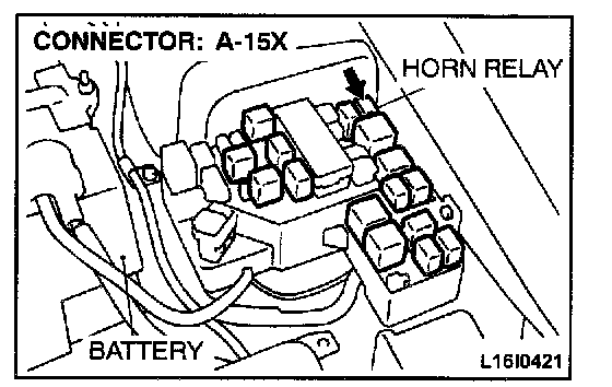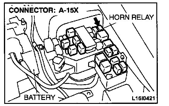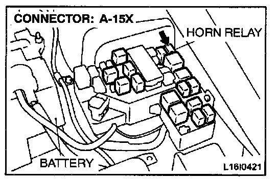 STEP 13. Check the horn relay connector A-15X and horn connector A-29 for damage.