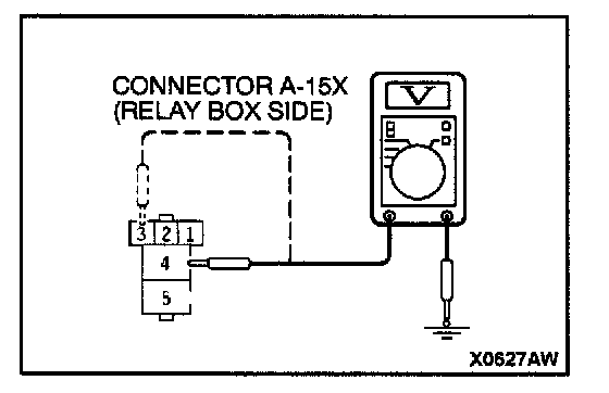 1. Disconnect the relay connector A-15X and measure at the relay box side.
