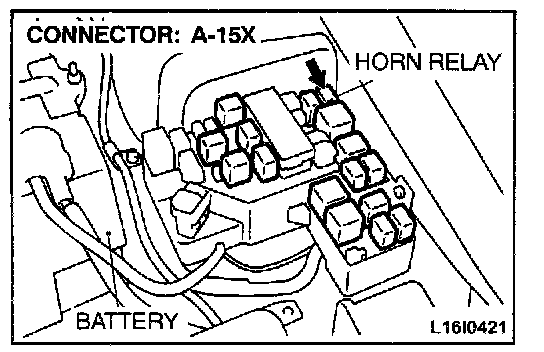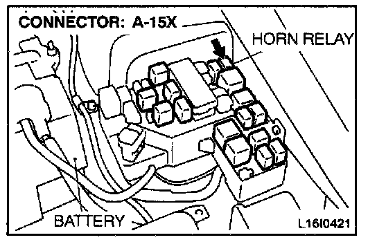 If the horn relay connector A-15X is damaged, repair or replace it. Refer to Harness Connector Inspection.